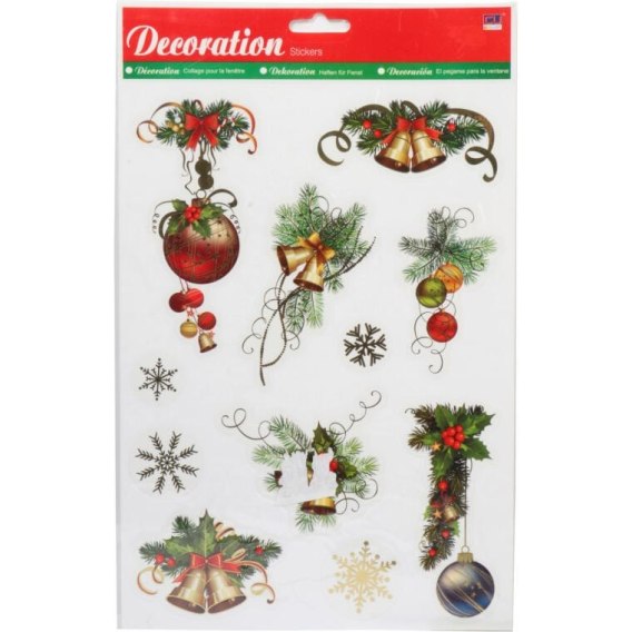 3D Samoprzylepne Naklejki na Okno z Motywem Bombek, Dzwonków i Śnieżynki - 12 szt.
