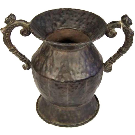 Amfora z metaloplastyki w kolorze brązowym z uszami oraz kutym wzorem