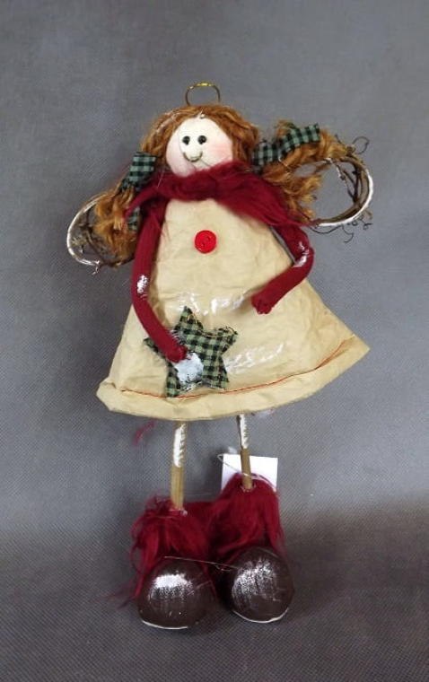 Aniołek w Ciepłych Butach - Dekoracja Świąteczna Beżowo-Czerwona