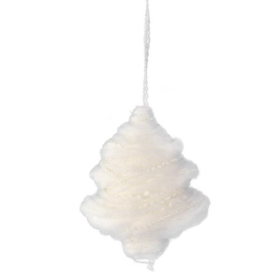 BIAŁA ZAWIESZKA DEKORACYJNA CHOINKA Z WŁÓCZKI 13 CM