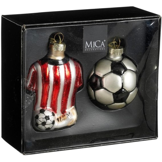 Nadaj swojej choince sportowego charakteru! Bombka formówka szklana piłka nożna MICA to idealna dekoracja dla fanów piłki nożnej - wyjątkowa, elegancka i pełna świątecznego blasku. Spraw, by Twoje Święta były jeszcze bardziej magiczne i pełne pasji!.