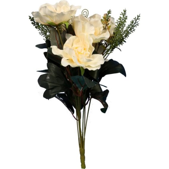 Bukiet o wysokości 42 cm świetnie sprawdzi się jako dekoracja stołu, parapetu lub komody, nadając wnętrzu przytulności i elegancji. Wysokiej jakości materiały, z których został wykonany, sprawiają, że kwiaty wyglądają niezwykle realistycznie i zachowują swoje piękno na długo bez potrzeby pielęgnacji. Jest to również idealna propozycja na dekorację nagrobną, podkreślającą delikatną pamięć o bliskich. Bukiet kremowych piwonii z dodatkami to doskonały wybór na różnorodne okazje i do wielu aranżacji.