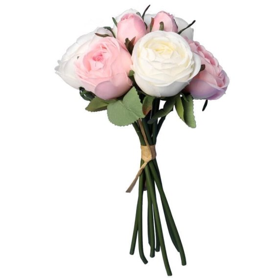 BUKIET 9 RÓŻ 28CM KOLOR RÓŻOWO BIAŁY