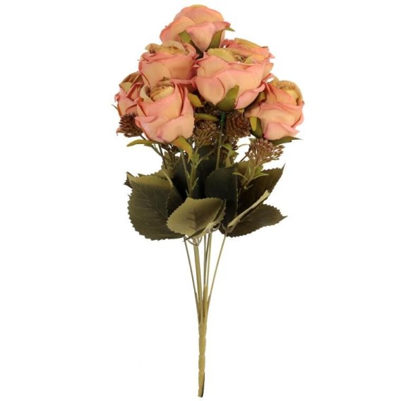 BUKIET 9 RÓŻ Z DODATKAMI 40 CM KOLOR ŁOSOSIOWY