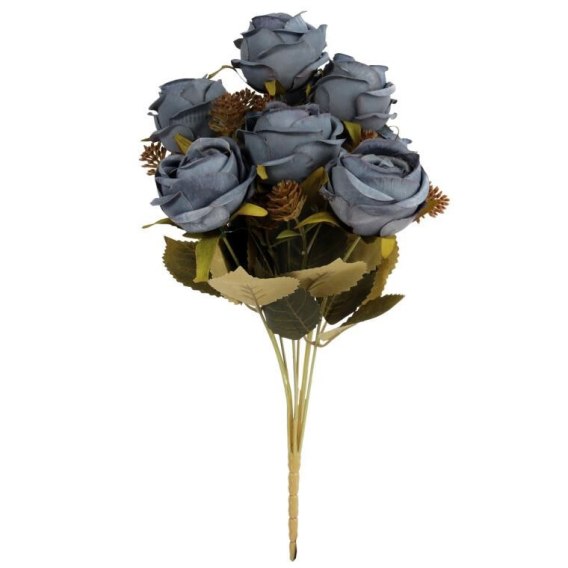 BUKIET 9 RÓŻ Z DODATKAMI 40 CM KOLOR NIEBIESKI
