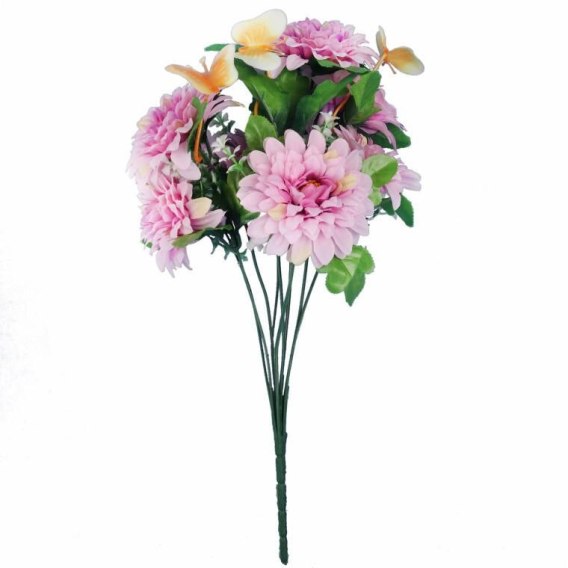 BUKIET FIOLETOWYCH MARGARETEK Z DEKORACYJNYMI MOTYLKAMI - KWIECISTA DEKORACJA 40 CM