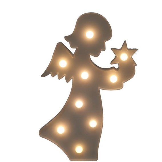 Biały Anioł LED 9l z Dekoracją Świetlną na Baterie 2xAA, 28 cm