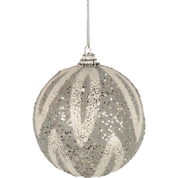 Bombka Dekorowana Styropianowa w Kolorze Biało-Srebrnym z Brokatem, Rozmiar 8cm