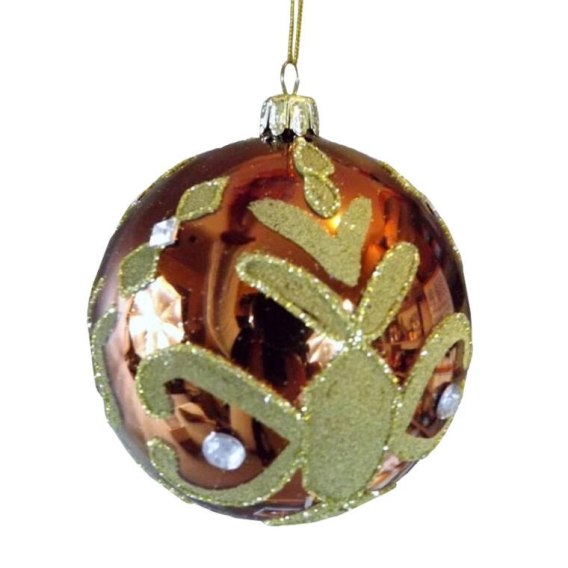 Bombka Szklana 9cm - Rudy Kolor z Brązowo-Złotą Dekoracją i Szkiełkami