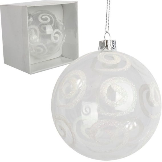 Przedstawiamy elegancką bombkę szklaną o przezroczystym wykończeniu, zdobioną białą, opalizującą dekoracją z brokatu, która doda niezwykłego blasku Twoim świątecznym aranżacjom. Ta wyjątkowa bombka o średnicy 10 cm to idealny wybór na choinkę, wieniec lub jako dekoracja stołu, doskonale komponując się z innymi ozdobami. Jej subtelny urok i wyjątkowy design sprawią, że każde święta będą jeszcze bardziej magiczne. Wykonana z wysokiej jakości szkła, bombka łączy w sobie trwałość i estetykę, stanowiąc doskonały element każdej świątecznej kompozycji. Dodaj tę wspaniałą bombkę do swojej kolekcji dekoracji i ciesz się pięknem, które wniesie do Twojego domu w czasie Świąt Bożego Narodzenia.