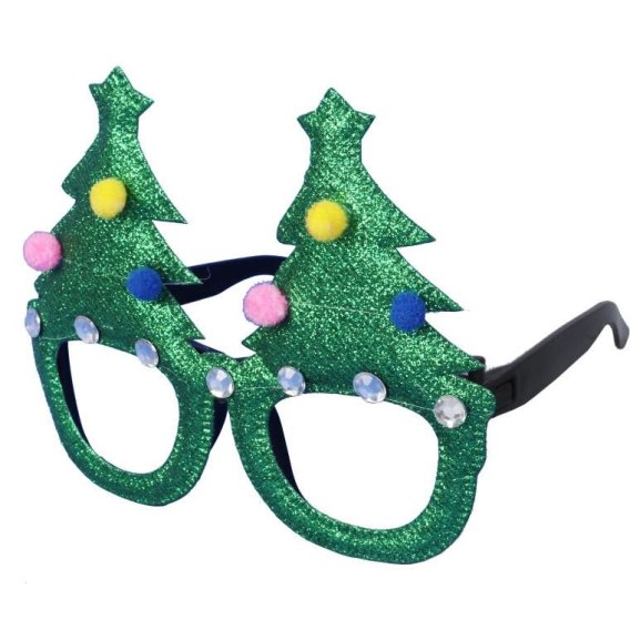Brokatowe Okulary Świąteczne w Kształcie Choinki