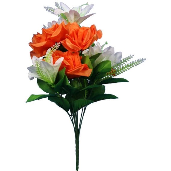 Bukiet 12 Sztucznych Kwiatów - Mix Róża z Lilią to olśniewająca kompozycja, która wniesie do Twojego wnętrza powiew świeżości i radości. Ten efektowny bukiet w kolorze pomarańczowo-białym składa się z 12 starannie wykonanych sztucznych kwiatów, które idealnie nadają się do dekoracji stołów, biur oraz innych przestrzeni, dodając im ciepła i elegancji.