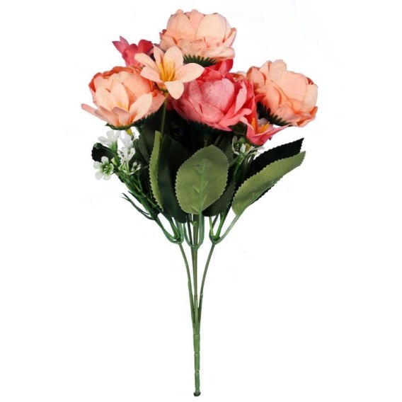 Sztuczny bukiet pięciu piwonii to doskonały wybór dla osób poszukujących eleganckiej dekoracji, która doda uroku każdemu wnętrzu. Wykonany z wysokiej jakości materiałów, ten bukiet charakteryzuje się realistycznym wyglądem, co sprawia, że do złudzenia przypomina żywe kwiaty. Idealnie sprawdzi się jako samodzielna ozdoba lub w różnorodnych kompozycjach florystycznych, wprowadzając do Twojego otoczenia subtelny i stylowy akcent przez cały rok. Sztuczny bukiet piwonii doskonale udekoruje także miejsca pamięci podczas święta Wszystkich Świętych, wnosząc szacunek i pamięć w te szczególne dni. Bukiet o długości 30 cm jest łatwy do aranżacji i idealnie wpasuje się w różnorodne stylizacje, zarówno nowoczesne, jak i klasyczne. Wybierając ten produkt, inwestujesz w piękno i trwałość, które będą cieszyć Twoje oczy przez długi czas.