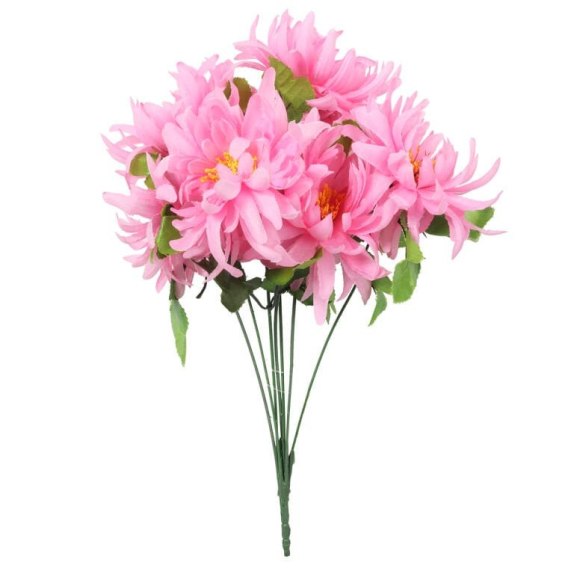 Sztuczny kwiat bukiet 7 chryzantem z żółtym środkiem w kolorze różowym to niezwykle efektowna dekoracja, która łączy w sobie elegancję i realistyczny wygląd. Wykonany z materiałów najwyższej jakości, bukiet do złudzenia przypomina żywe chryzantemy, co sprawia, że doskonale sprawdzi się zarówno jako samodzielna ozdoba, jak i element większych kompozycji florystycznych. Jego subtelny różowy kolor wprowadza do wnętrza ciepło i radość, co czyni go idealnym wyborem do dekoracji miejsc pamięci podczas Święta Wszystkich Świętych. Bukiet o wysokości 50 cm z łatwością wkomponuje się w różnorodne aranżacje, dodając im uroku i elegancji, a jego trwałość zapewnia długotrwałą radość z użytkowania.