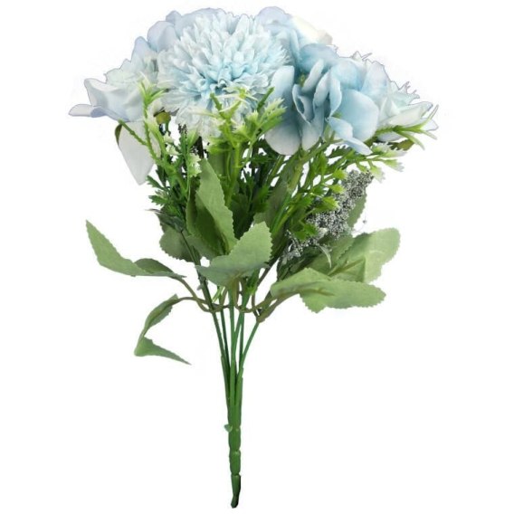 Bukiet 7 mieszanych kwiatów sztucznych z czosnkiem 32cm w kolorze niebieskim