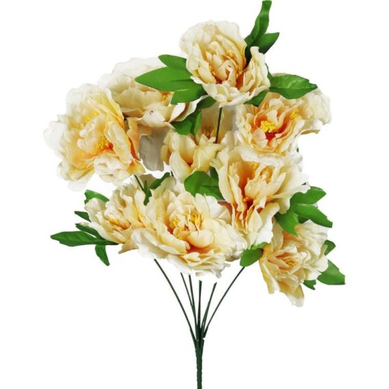 Bukiet dziewięciu żółtych piwonii o wysokości 50 cm to efektowna kompozycja, która wprowadza do każdego wnętrza radosny i optymistyczny klimat. Te starannie wykonane sztuczne kwiaty doskonale imitują naturalne piwonie, a ich intensywny żółty kolor symbolizuje szczęście, przyjaźń oraz nowy początek, co czyni je idealnym akcentem na różnorodne okazje.