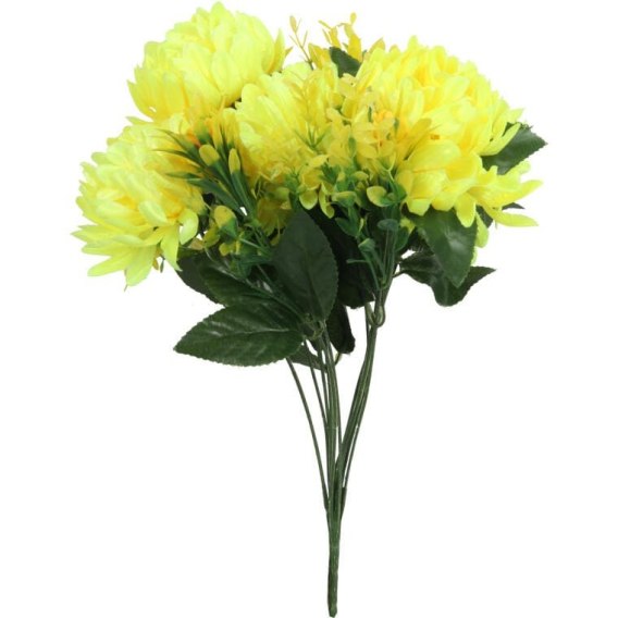 Sztuczny kwiat bukiet 11 chryzantem z bukszpanem w kolorze żółtym to elegancka i realistyczna dekoracja, stworzona z najwyższej jakości materiałów, które sprawiają, że kwiaty do złudzenia przypominają żywe rośliny. Dzięki swojemu naturalnemu wyglądowi, bukiet doskonale sprawdzi się jako samodzielna ozdoba lub jako część większej kompozycji, wprowadzając ciepło i subtelność do każdej przestrzeni. Idealny wybór na Święto Wszystkich Świętych, szczególnie do dekoracji miejsc pamięci, gdzie doda uroku i podkreśli wyjątkowy charakter tej chwili. Bukiet ma wysokość 46 cm, co czyni go doskonale proporcjonalnym i łatwym do aranżacji w różnych miejscach.