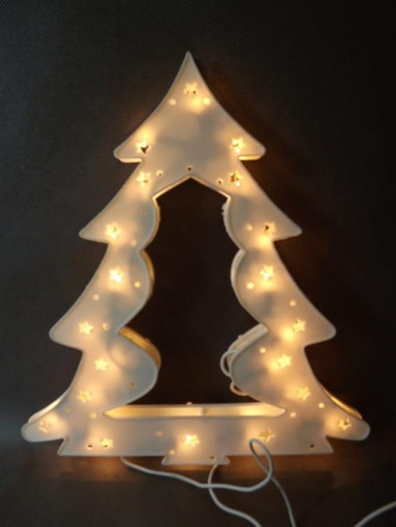 Choinka Świetlna Dekoracyjna z 20 Lampkami, Biała, 30x27cm, Zasilanie Sieciowe