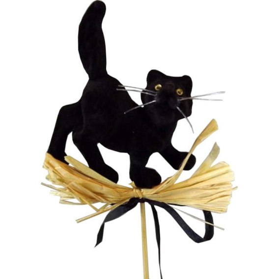 Czarny Flauszowy Kotek na Pik z Wstążką i Siankiem
