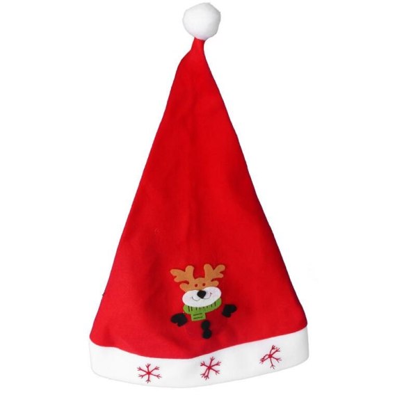 Czerwona Czapka Mikołaja z Figurką Renifera - Wysokiej Jakości Materiał