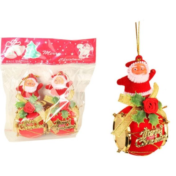 Czerwone Zawieszki Świąteczne - Mikołaje na Bębenkach (Komplet 2 sztuk)