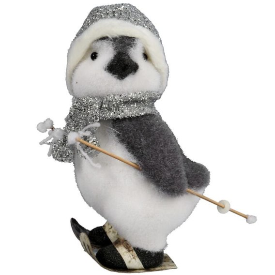 DEKORACJA ŚWIĄTECZNA PINGWIN NA NARTACH szary 28 cm