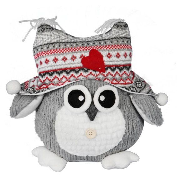 DEKORACJA ŚWIĄTECZNA SOWA STOPER DO DRZWI szara 30 cm