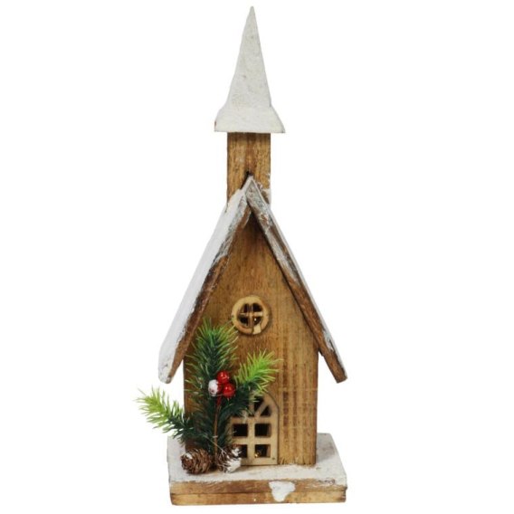 DREWNIANY KOŚCIÓŁ DEKORACJA OZDOBA ŚWIĄTECZNA LED