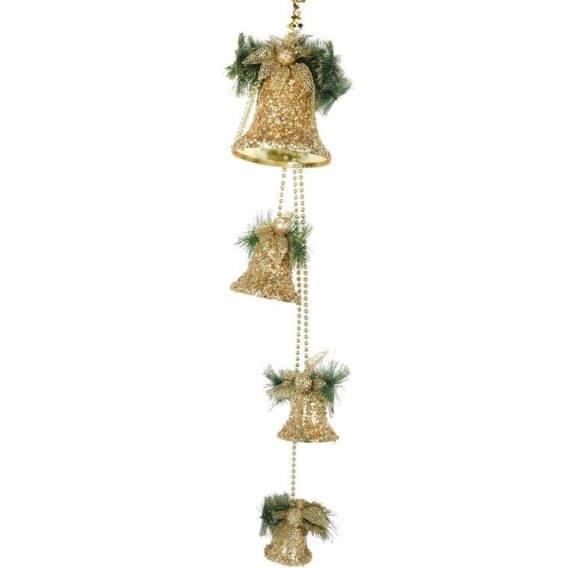 DUŻA DEKORACJA ŚWIĄTECZNA - 4 DZWONY ZAWIESZKA ZŁOTA