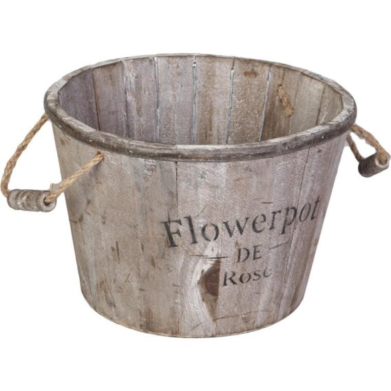 Dekoracyjne Drewniane Wiaderko w Kolorze Brązowym 22x15 cm