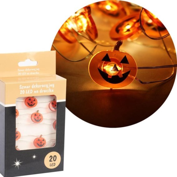 Dekoracyjne Lampki LED w Kształcie Dyni na Giętkim Druciku, Zasilane na Baterie