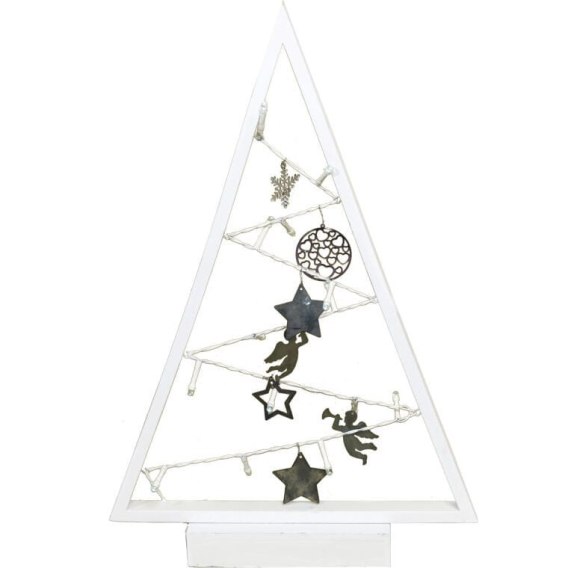 Drewniana Choinka Świąteczna z LED 41 cm - Biała Dekoracja Świetlna Zasilana Bateriami