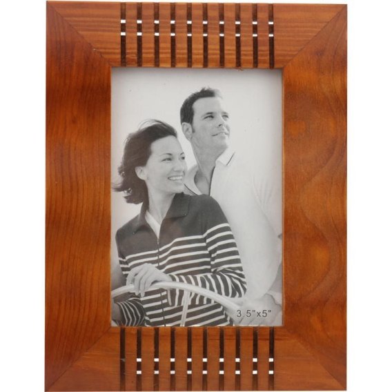 Drewniana stojąca falowana ramka na zdjęcie w kolorze brązowym żłobiona 14 x 17,7 cm