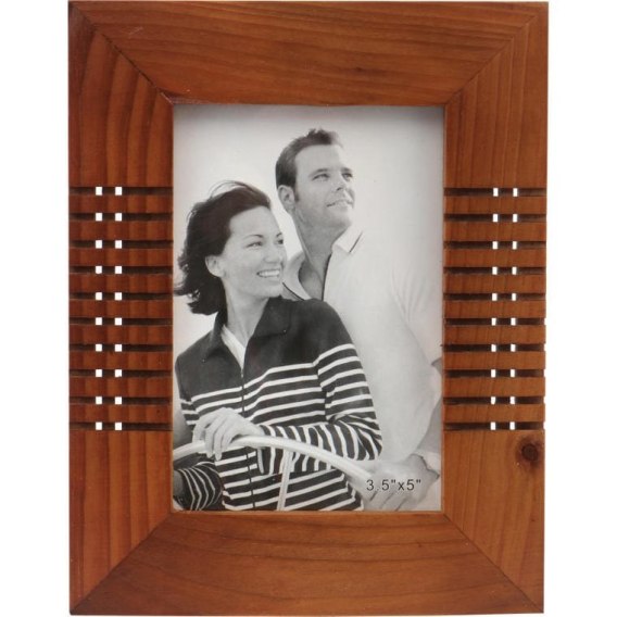 Drewniana stojąca żłobiona ramka na zdjęcie w kolorze brązowym 14x17,7 cm