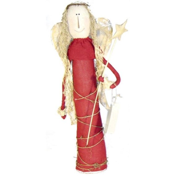 Duży Anioł Dekoracyjny z Gwiazdą w Kolorze Bordowo-Beżowym