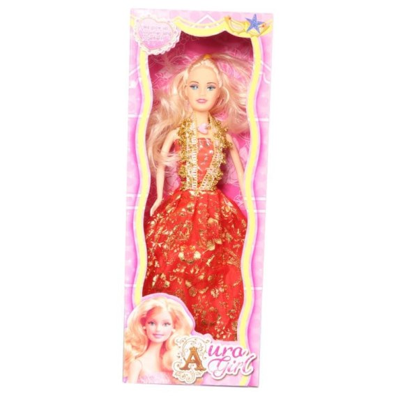 Elegancka Lalka Prezentowa w Czerwono-Złotej Sukience
