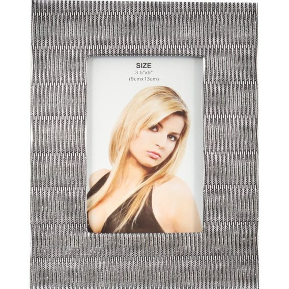 Elegancka stojąca ramka na zdjęcie z metalicznym zdobieniem i wykończeniem z czarnej tkaniny 15 x 19 cm