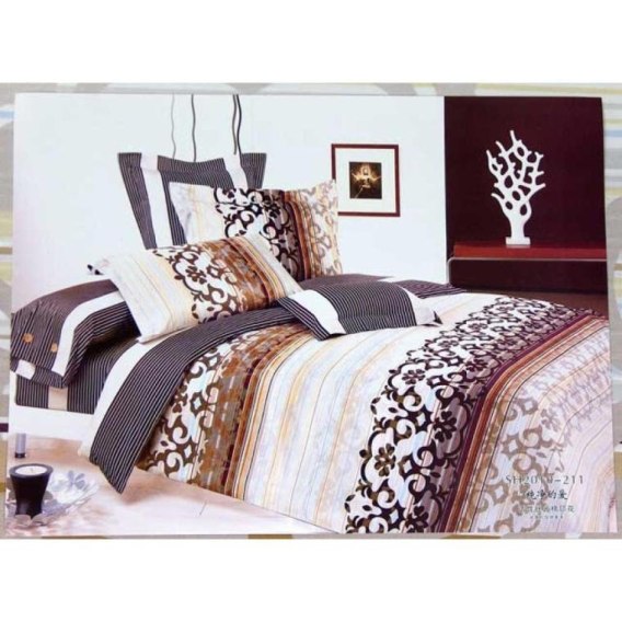 Elegancki Komplet Pościeli Satynowej w Odcieniach Bieli i Brązu