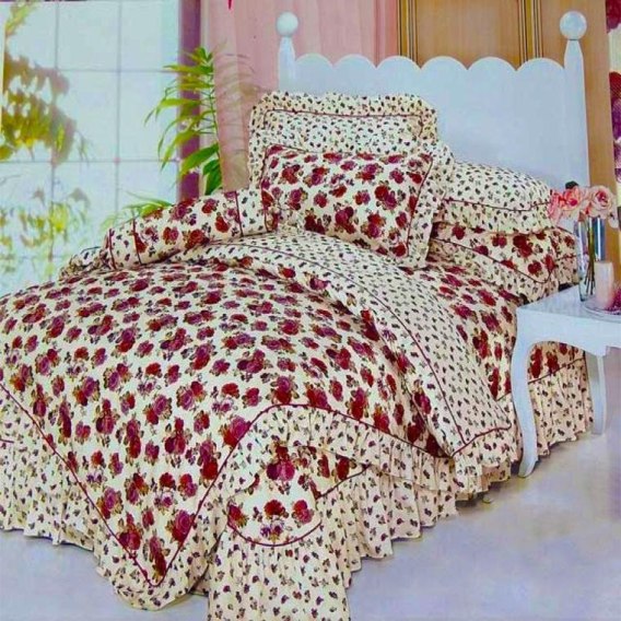Elegancki Komplet Pościeli Satynowej z Bawełny, Biały z Czerwonymi Kwiatami