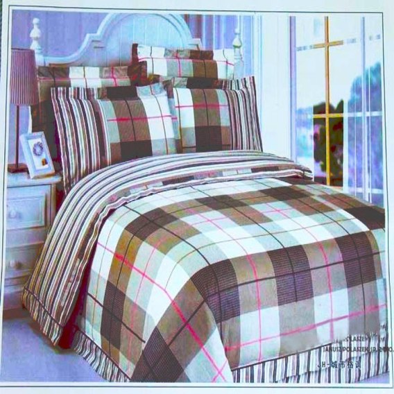 Elegancki Komplet Pościeli w Brązowej Kracie ze 100% Satynowej Bawełny