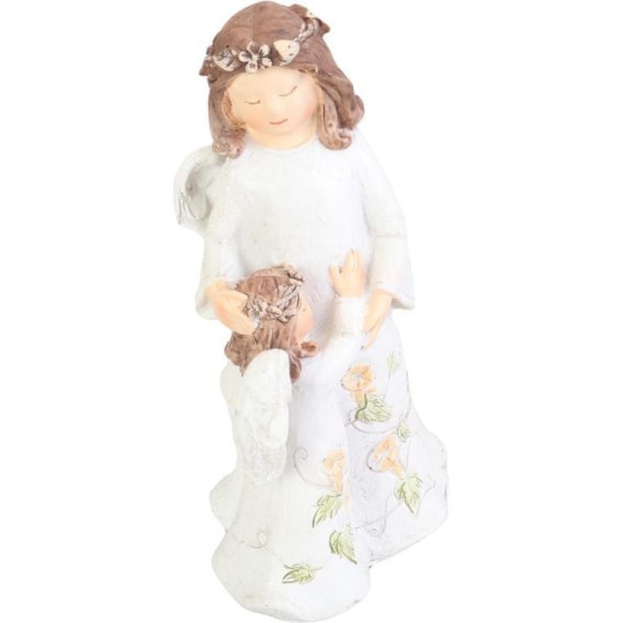 Figurka Dekoracyjna Anioł Opiekun z Aniołkiem Biała Polirezyna