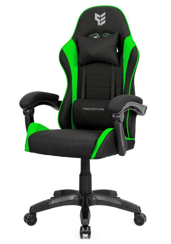 Fotel obrotowy, gamingowy marki Prototype z odchylanym oparciem, blokadą MPS i niezależną funkcją regulacji wysokości oparcia. Tapicerowany wytrzymałą tkaniną.