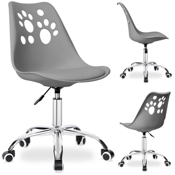 Fotel dziecięcy Grover marki eHokery to solidny fotel biurowy z płynną regulacją wysokości. Wykonany z wytrzymałego tworzywa PP, ekoskóry i stelaża wykończonego na chromowany kolor. Krzesło biurowe Grover charakteryzuje się wyprofilowanym, ergonomicznym siedziskiem z miękką wygodną poduszką z ekoskóry. Oparcie zdobi ciekawy wzór w kocie łapki. Fotel jest wygodny i komfortowy w użytkowaniu. Jest stabilny, w pełni obrotowy i cichy dzięki gumowym kółkom. Ciekawe wzornictwo i pastelowe kolory świetnie wpasują się w każdy pokój dziecięcy. Kupując u nas, kupujesz od bezpośredniego importera!