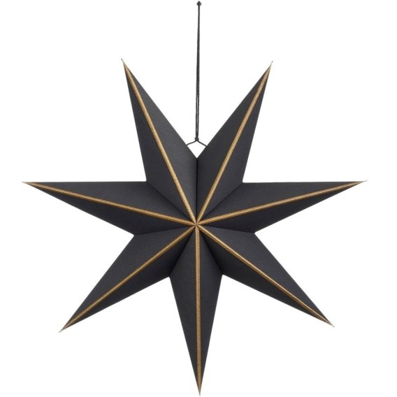 Czerń to nowa klasyka świąt! Zawieś wyjątkowa GWIAZDĘ DEKORACYJNĄ WISZĄCĄ PAPIEROWA FSC 18x60 CM CZARNA Z 7 RAMIONAMI OD MICA - TO minimalizm, który robi wrażenie!