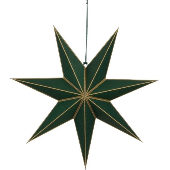 Chcesz dodać swojej świątecznej aranżacji wyjątkowej głębi, stylu i naturalnego koloru? Postaw na dekoracyjną, papierową gwiazdę OD MICA - elegancką, zieloną ozdobę o imponującej średnicy 60 cm i wyrazistym geometrycznym kształcie. Wykonana z papieru z certyfikatem FSC, składana i wielorazowego użytku, będzie idealna do powieszenia w oknie, nad stołem, w salonie lub witrynie.