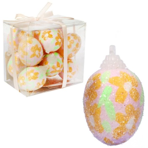 Zawieszki - jajka wielkanocne zestaw 12 sztuk to dekoracyjny komplet, który natychmiast wprowadza świąteczny nastrój do Twojego wnętrza. Zestaw 12 jajek w delikatnym, różowym kolorze, o wielkości 4 cm, stanowi idealny dodatek do wielkanocnych stroików oraz innych świątecznych aranżacji. Te ozdobne jajka świetnie sprawdzą się zarówno jako element dekoracji koszyczka ze święconką, jak i jako elegancka ozdoba w wazonie lub na świątecznym stole. Jajka wielkanocne symbolizują płodność, nowe życie i odrodzenie. Ich obecność w tradycjach wielu kultur związana jest z cyklami natury, życiem i śmiercią, a w kulturze chrześcijańskiej symbolizują również Zmartwychwstanie. Te zawieszki to doskonały wybór, aby wzbogacić swoje wielkanocne dekoracje i dodać wiosennego uroku Twojemu domowi, tworząc ciepłą i radosną atmosferę, która oczaruje wszystkich gości.