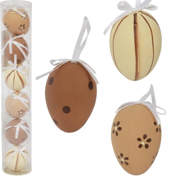 Jajka plastikowe zawieszki zestaw 6 sztuk 7cm brązowe