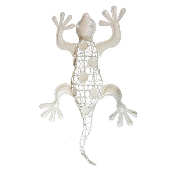 Ozdoba w postaci jaszczurki do powieszenia na ścianę to wyjątkowy element dekoracyjny wykonany z metaloplastyki w eleganckim kremowym kolorze. Jej wymiary wynoszą 52x32 cm, co sprawia, że jest doskonałym akcentem do każdego wnętrza. Ta stylowa jaszczurka wprowadza do przestrzeni niepowtarzalny klimat, łącząc w sobie artystyczne wzornictwo i wysoką jakość wykonania.