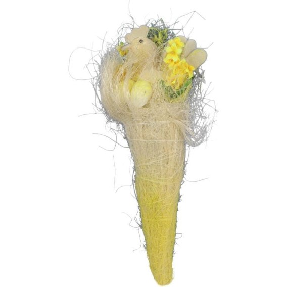 KOGUT Z JAJKAMI W KOKONIE Z SIZALU DEKORACJA WIELKANOCNA ŻÓŁTA