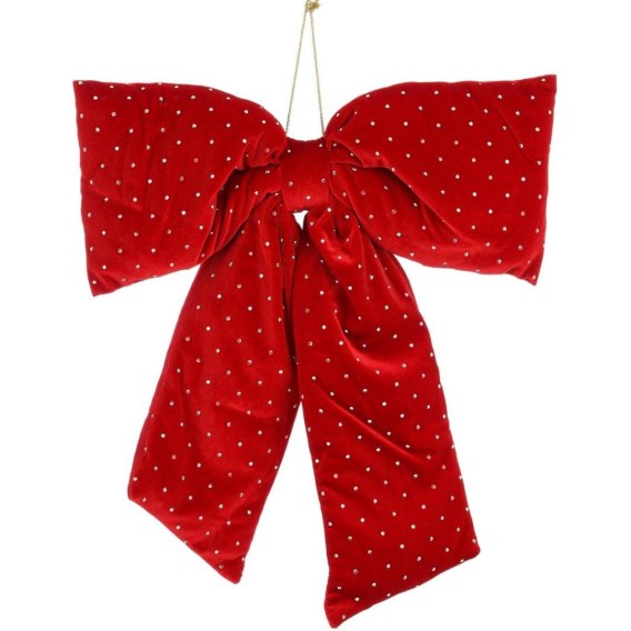 KOKARDA DEKORACYJNA CZERWONA 39x50CM MICA to klasyczna ozdoba choinkowa i prezentowa, idealna do stroików i świątecznych aranżacji.